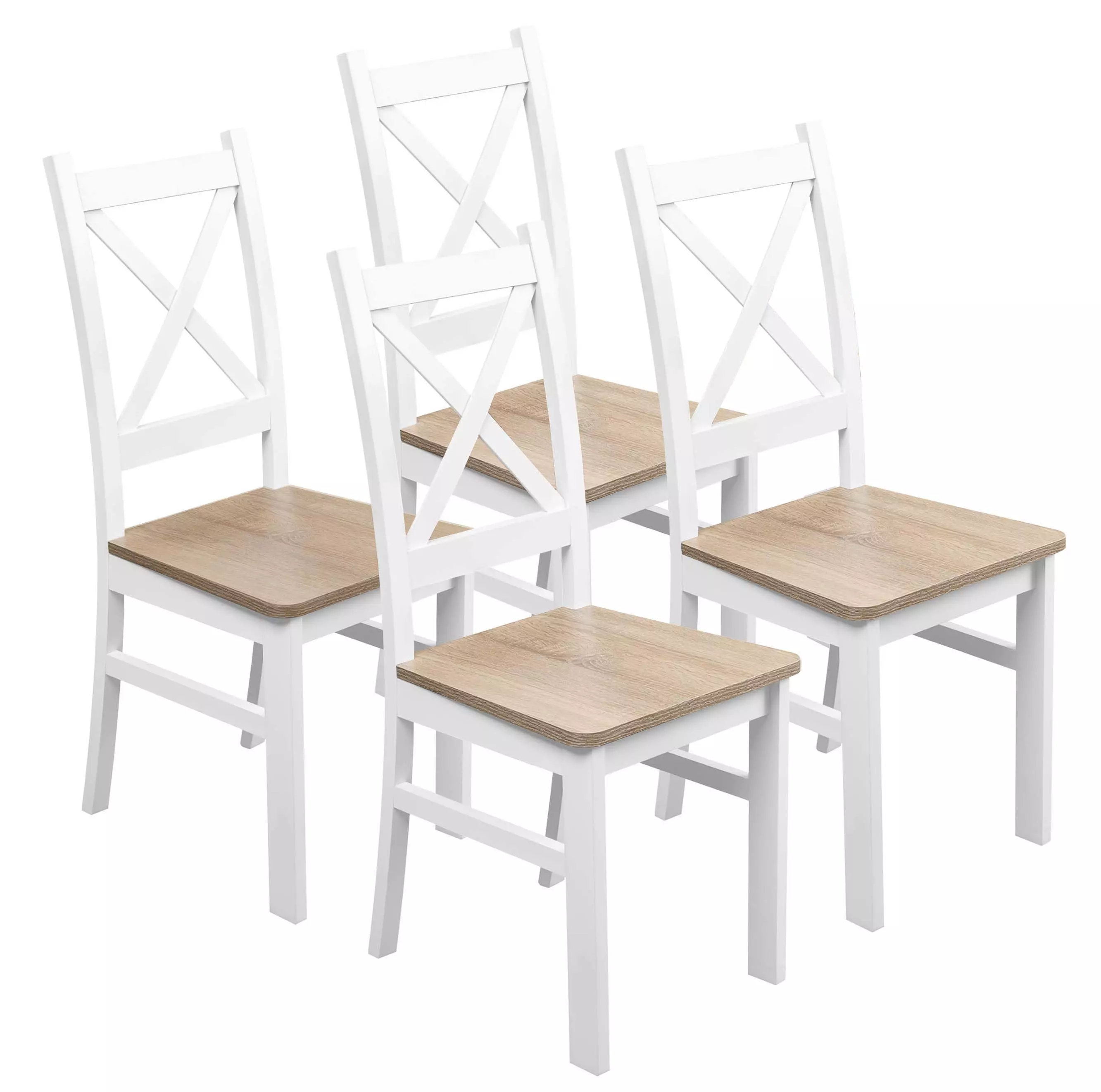 Komplet 4x Krzesło drewniane KRT Biały/Dąb Sonoma