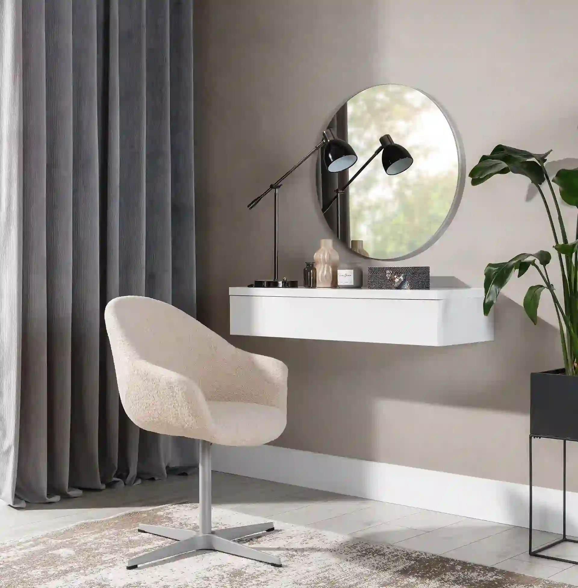 Kolekcja Navene to połączenie funkcjonalności, elegancji i nowoczesnego designu, której głównymi elementami są lustro i toaletka wisząca. Oferując harmonijne połączenie formy i funkcji, kolekcja ta doskonale wpisuje się w różnorodne style wnętrz, od minimalistycznych po bardziej klasyczne aranżacje. Lustro z kolekcji Navene wyróżnia się nie tylko estetycznym designem, ale także solidną konstrukcją oraz wysoką jakością wykonania. Jego prostota i elegancja sprawiają, że doskonale komponuje się z każdym wystrojem, dodając przestrzeni subtelny akcent. Ponadto, lustro to nie tylko element dekoracyjny, ale także praktyczne narzędzie, które optycznie powiększa przestrzeń i odbija światło, nadając wnętrzu większej jasności i głębi. Toaletka wisząca z kolekcji Navene to funkcjonalne rozwiązanie dla osób poszukujących eleganckiego i ergonomicznego miejsca do codziennych rytuałów pielęgnacyjnych. Jej minimalistyczny design sprawia, że doskonale wpisuje się w nowoczesne wnętrza, jednocześnie oferując dużą funkcjonalność i praktyczność. Dzięki odpowiednio zaprojektowanej konstrukcji, toaletka zapewnia wygodną przestrzeń do przechowywania kosmetyków i akcesoriów, umożliwiając łatwy dostęp do nich podczas codziennych porannych przygotowań. Cała kolekcja Navene jest doskonałym wyborem dla osób ceniących sobie zarówno estetykę, jak i funkcjonalność w swoim otoczeniu, zapewniając eleganckie i praktyczne rozwiązania do każdego wnętrza.