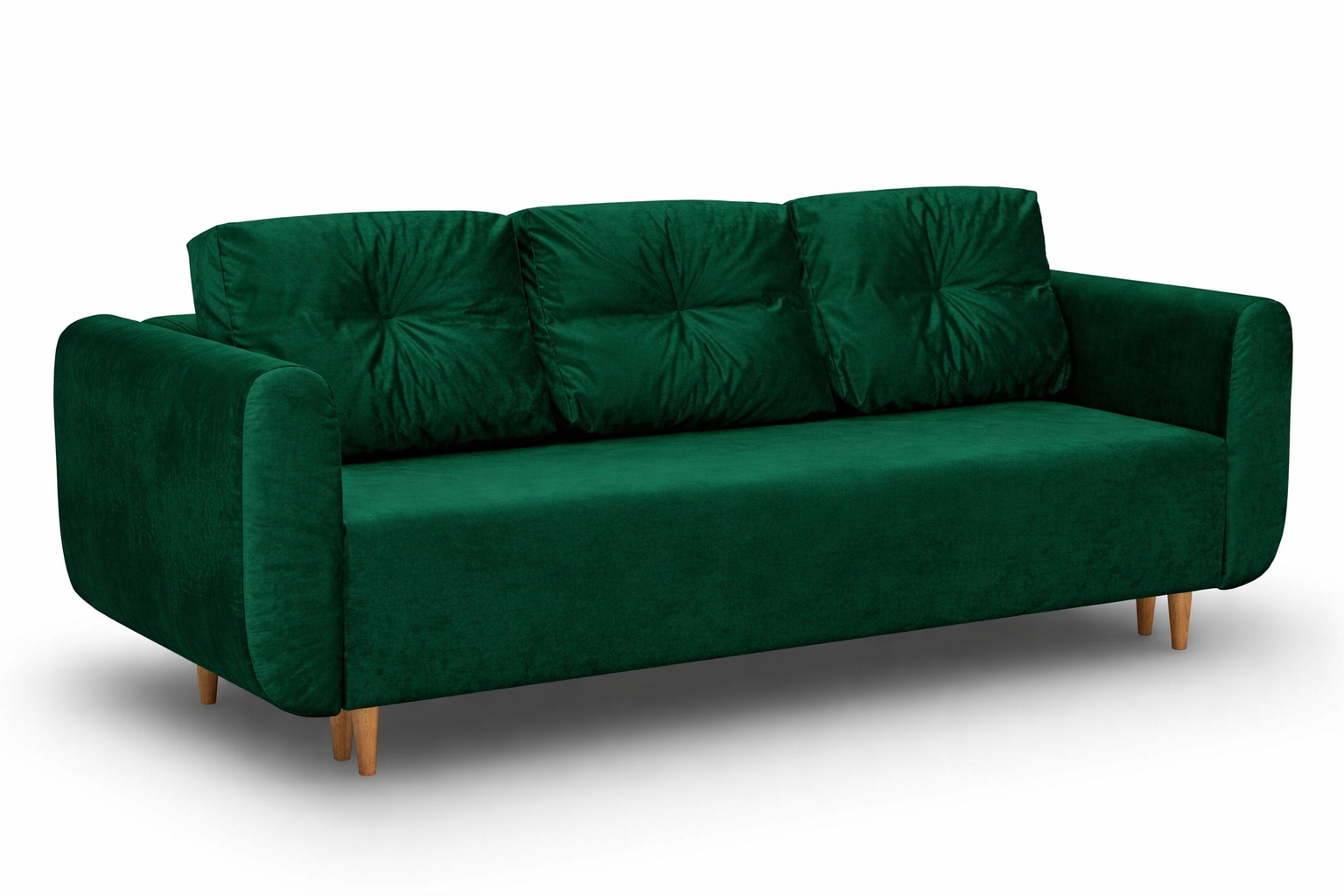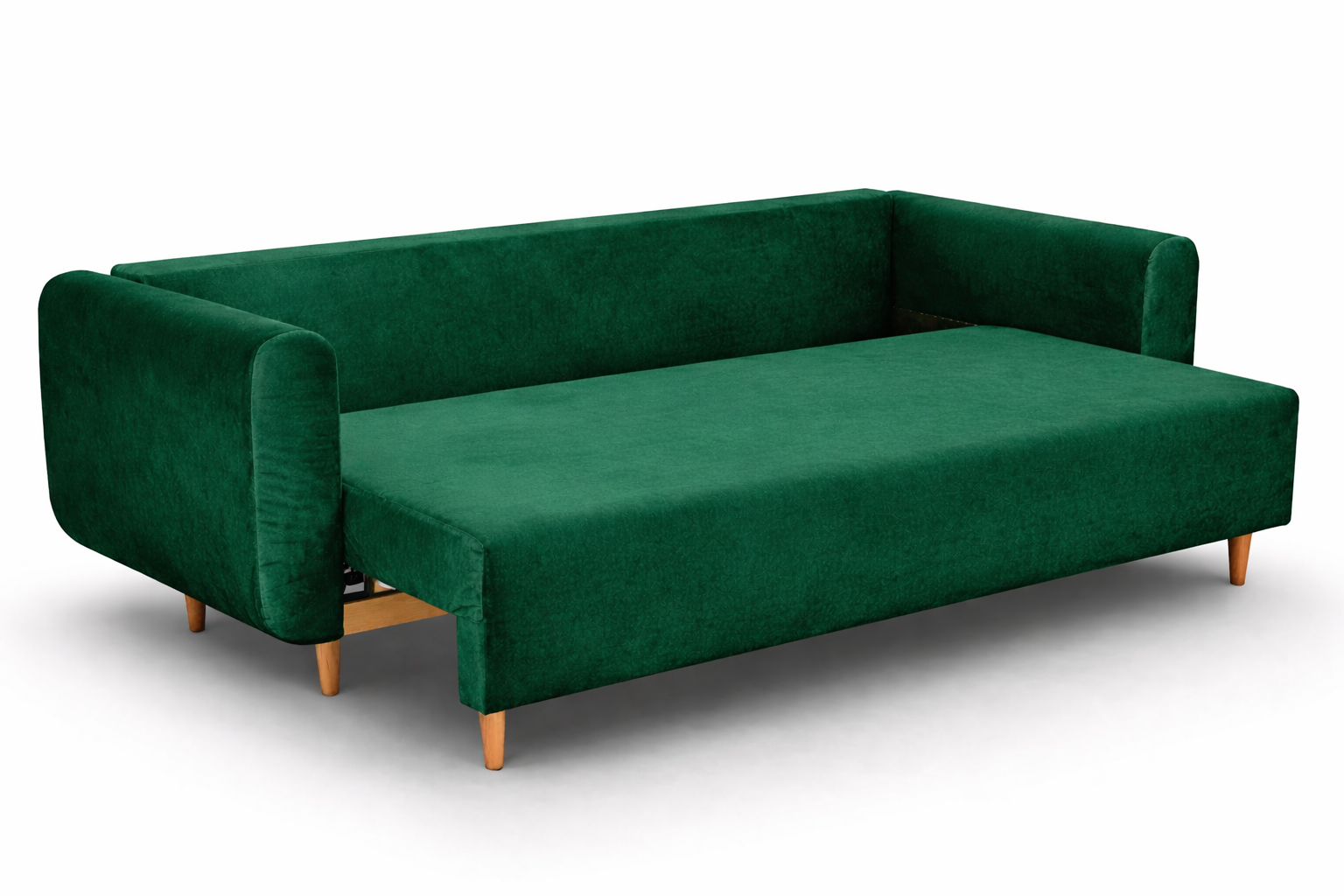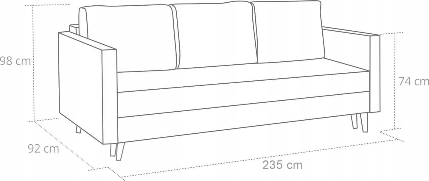 Sofa Sewilla to stylowy mebel z funkcją spania codziennego. Sprężyny bonell na całej powierzchni spania zapewniają wygodny i zdrowy sen. Mechanizm ułatwiający rozkładanie pozwoli ci w szybki sposób przekształcić sofę w dwuosobowe łóżko. W zestawie znajdują się trzy duże poduszki, które pozwolą na wygodny wypoczynek. W sofie znajdziesz również duży pojemnik, w którym możesz przechowywać pościel bądź inne przedmioty domowego użytku.