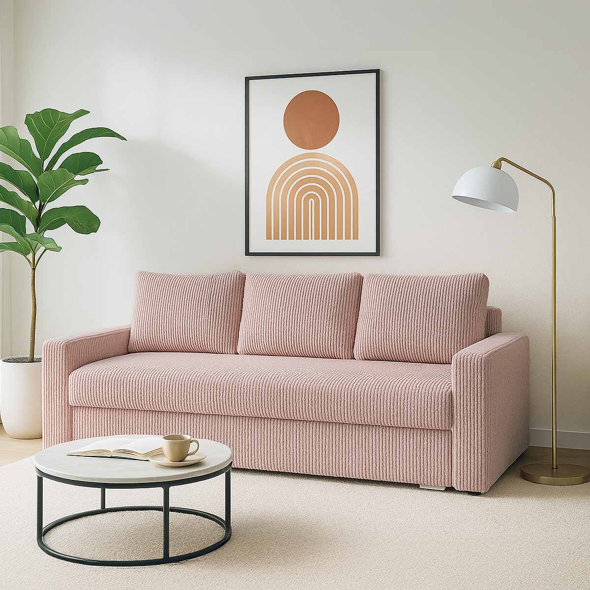 Kanapa rozkładana z funkcją spania SILVER PRIMA sztruks różowa