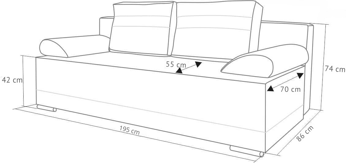 Dodatkowy atut to praktyczny pojemnik na pościel z łatwym dostępem dzięki mechanizmowi ułatwiającemu otwieranie i rozkładanie. Mniej niż jedna minuta, to czas potrzebny by przekształcić sofę w bardzo wygodne łóżko.