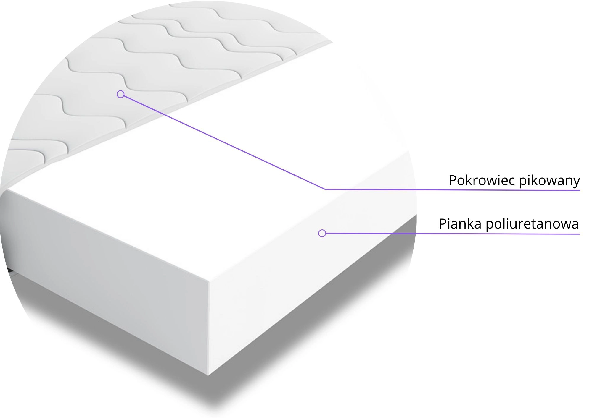 Główna warstwa materaca składa się z 10 cm pianki poliuretanowej, która zapewnia solidne wsparcie i stabilność. Ta gruba warstwa pianki równomiernie rozkłada ciężar ciała, eliminując punkty nacisku i wspierając kręgosłup w prawidłowej pozycji.Zalety: