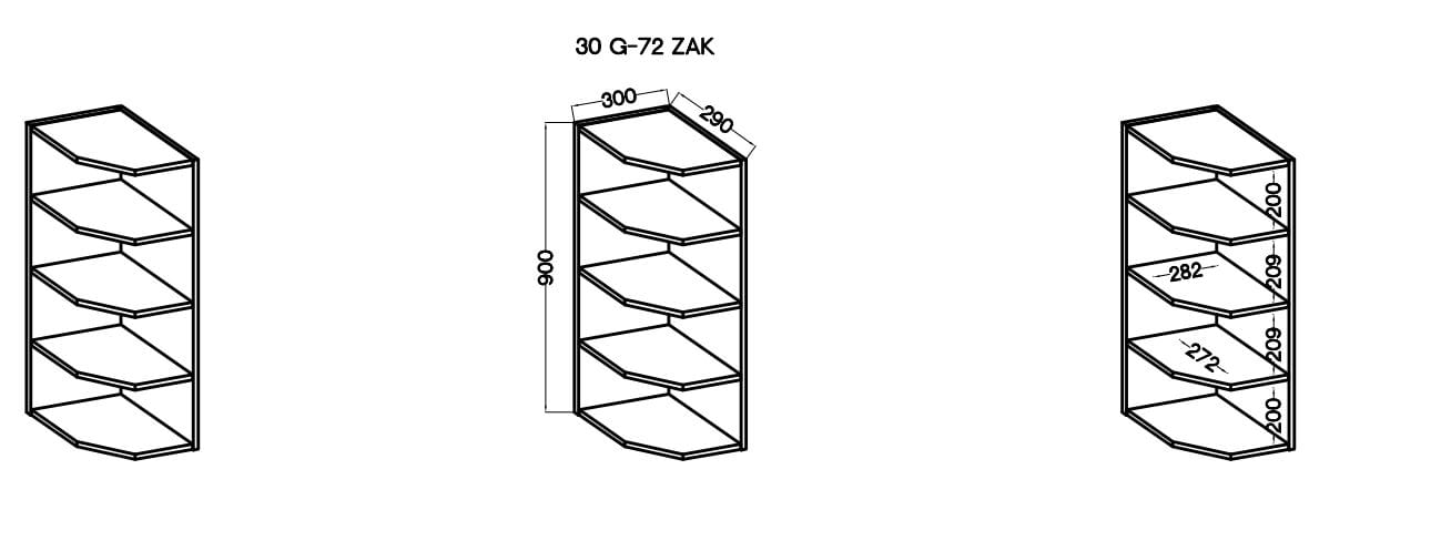 Szafka górna do kuchni otwarta zakończenie 30 G-90 ZAK Dąb Artisan