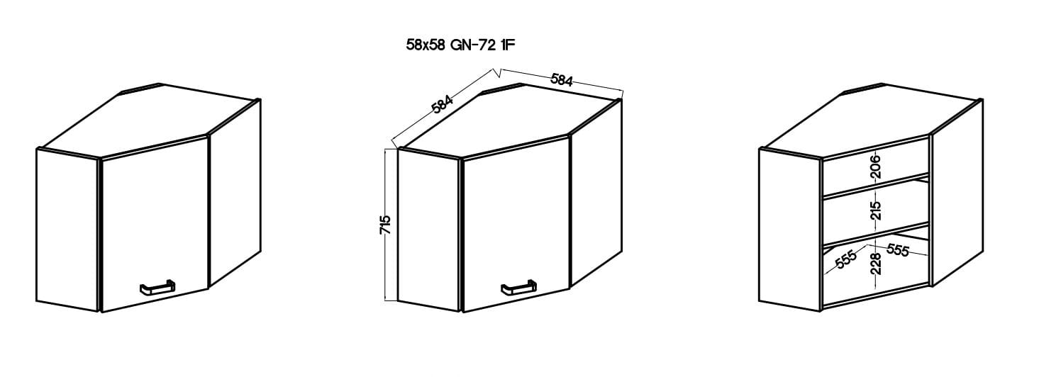 Szafka górna do kuchni narożna STILO 58x58 GN-72 1 F Gliniasty Szary/Biały