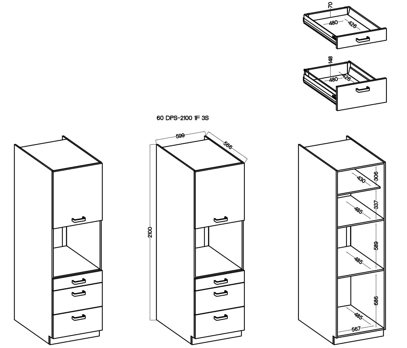 Szafka kominowa do kuchni z szufladami na piekarnik STILO 60 DPS-210 3S 1F Szary/Biały