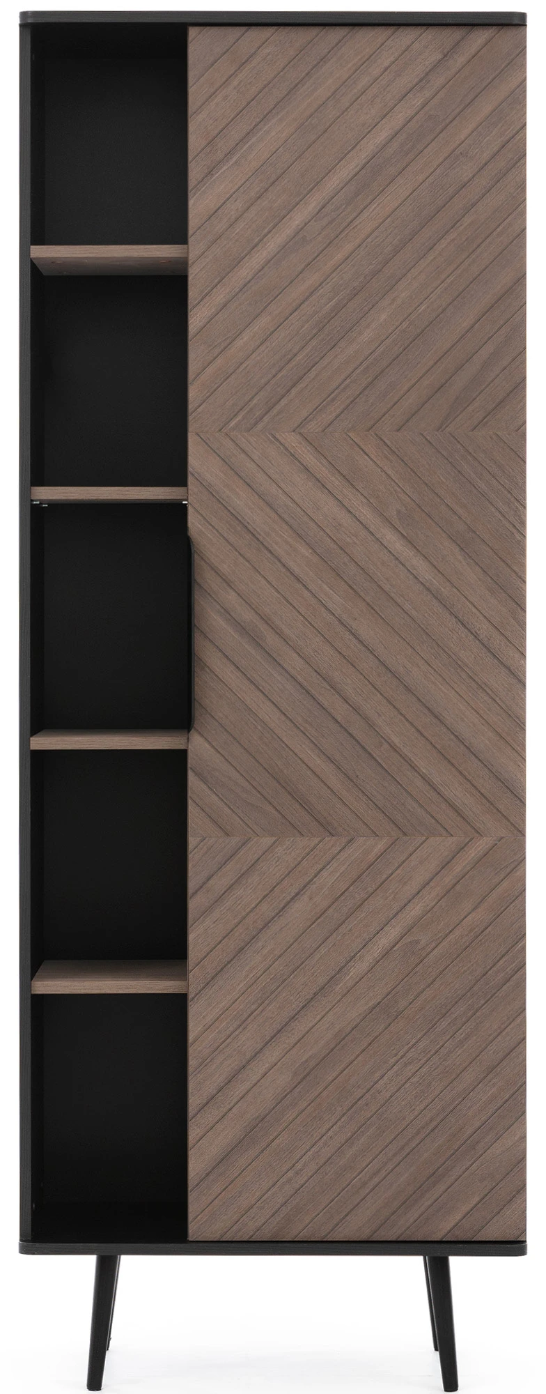 Stwórz elegancki klimat w swoim salonie dzięki temu stylowemu regałowi o wymiarach 70x41x190 cm z kolekcji Pinelli. Wykonany z wysokiej jakości płyty laminowanej w kolorze czarny grafit/Captains Deck, idealnie komponuje się z nowoczesnym wnętrzem. Posiada uchylne drzwi, ponad 8 półek, ciche domykanie oraz niskie, metalowe nóżki. Idealny do przechowywania książek, dekoracji czy sprzętów elektronicznych. Odkryj teraz elegancję i funkcjonalność z regałem Pinelli!