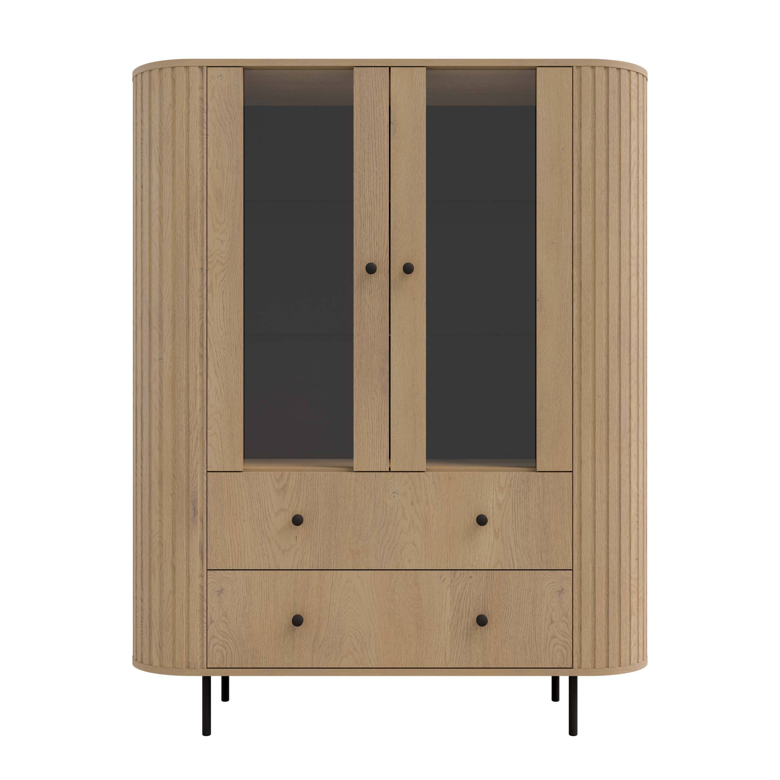 Witryna do salonu z przeszklonymi drzwiami Flana 122 2F2S Dąb Cremona