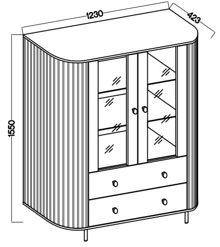 - Dwoje drzwi z przeszkleniem i dwie szuflady – wygodne przechowywanie i ekspozycja