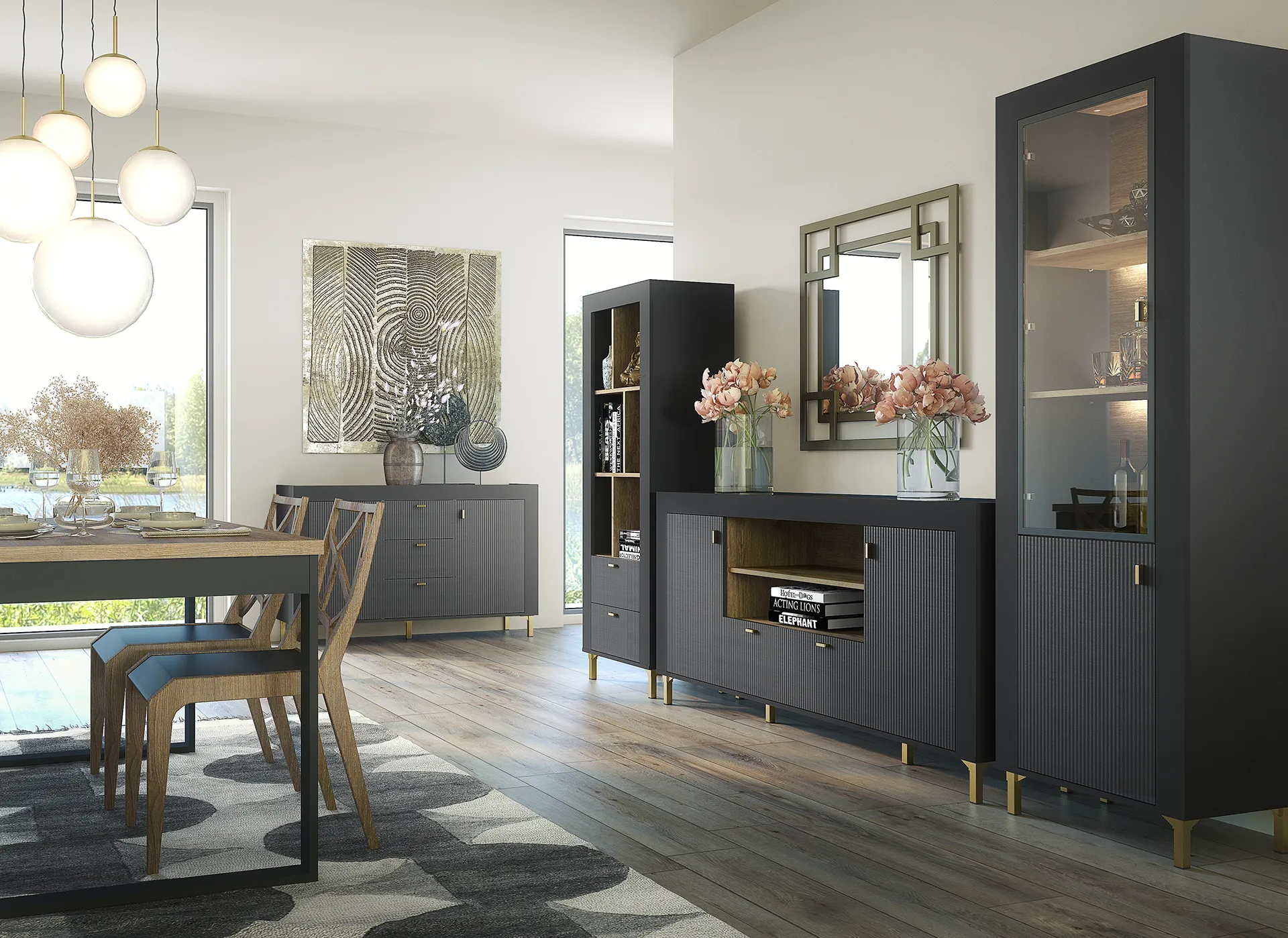 Witryna Mossa to niezastąpiony element każdego nowoczesnego wnętrza, który nie tylko organizuje przestrzeń, ale także dodaje jej elegancji. Jej minimalistyczny design idealnie współgra z różnymi stylami aranżacyjnymi, wprowadzając harmonię do pomieszczenia. Dzięki przemyślanemu układowi półek i szklanych frontów, witryna Mossa umożliwia efektowne wyeksponowanie dekoracji, zastawy czy kolekcji książek. Solidna konstrukcja zapewnia nie tylko estetyczny wygląd, ale także trwałość i stabilność mebla. Witryna Mossa jest nie tylko funkcjonalnym rozwiązaniem do przechowywania, ale także elementem dekoracyjnym, który nadaje wnętrzu indywidualny charakter. Szklane fronty pozwalają na łatwe zlokalizowanie potrzebnych przedmiotów oraz dodają lekkości i przestrzeni pomieszczeniu. Dzięki swojej uniwersalności, witryna Mossa doskonale sprawdza się zarówno w salonie, jadalni jak i w innych miejscach, gdzie potrzebna jest elegancka i funkcjonalna przestrzeń do przechowywania