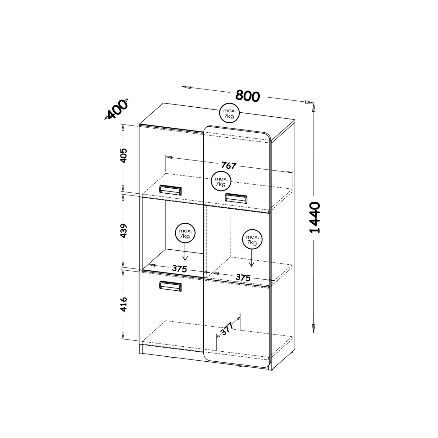 Niski regał Lorento 05 to funkcjonalny mebel, który pomoże zapanować nad porządkiem w Twoim pomieszczeniu. Dzięki swojej kompaktowej budowie idealnie wpasowuje się w mniejsze pomieszczenia, zapewniając jednocześnie wystarczającą przestrzeń do przechowywania różnorodnych rzeczy. Możesz na nim wyeksponować kolekcję książek, ozdób, czy nawet wykorzystać go jako praktyczną biblioteczkę w salonie lub biurze. Niski regał z 4 pólkami to uniwersalne rozwiązanie dla wielu pomieszczeń.