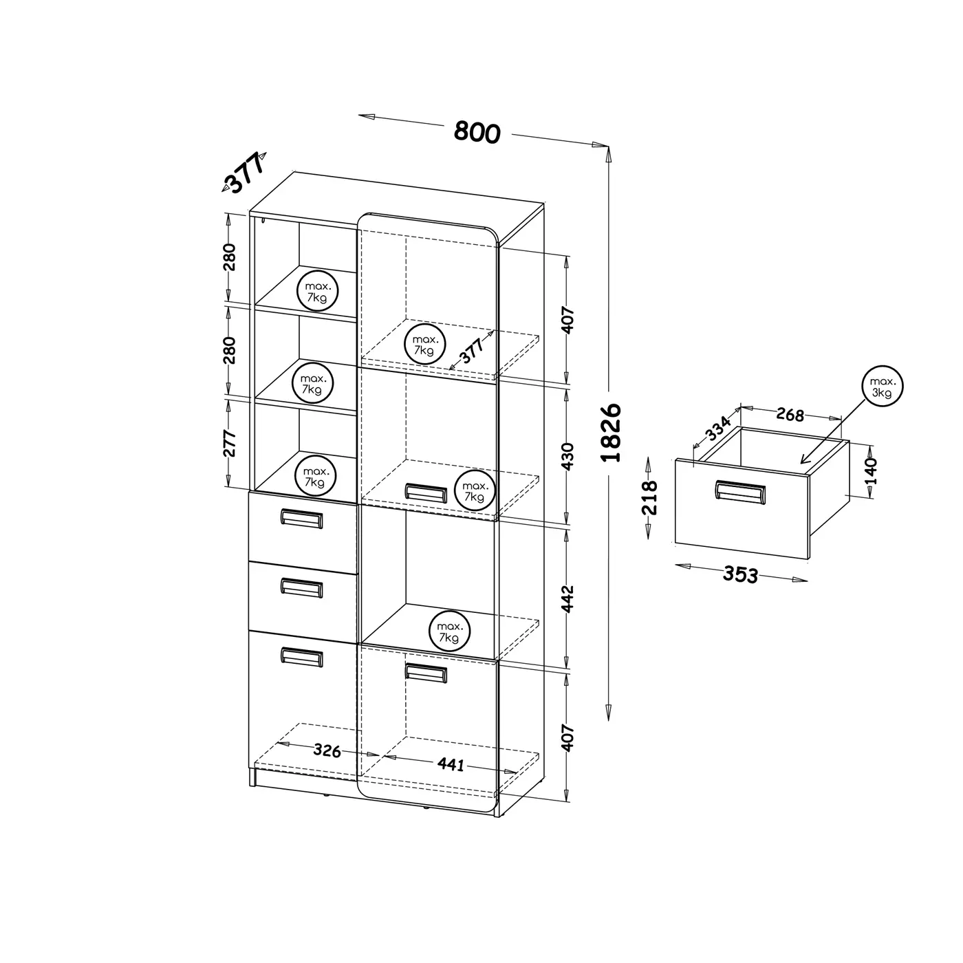 Regał 80 cm z szufladami Lorento 07 Biały/Dąb Nash
