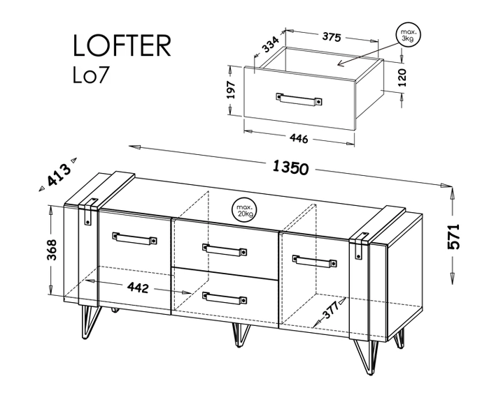 Szafka RTV Lofter LO7 - wymiary/specyfikacja: