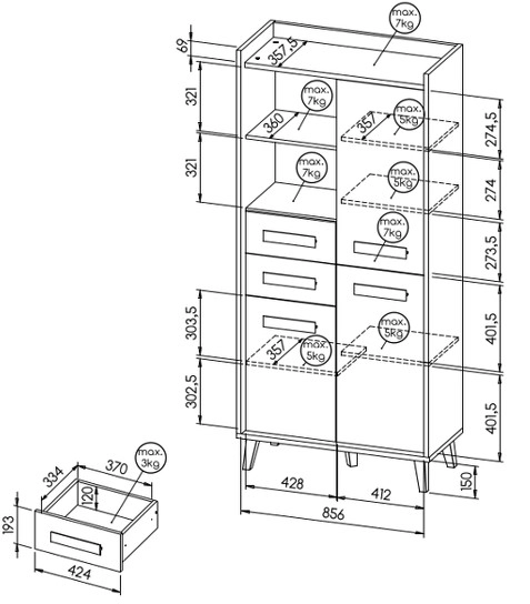 - Ilość półek: 9