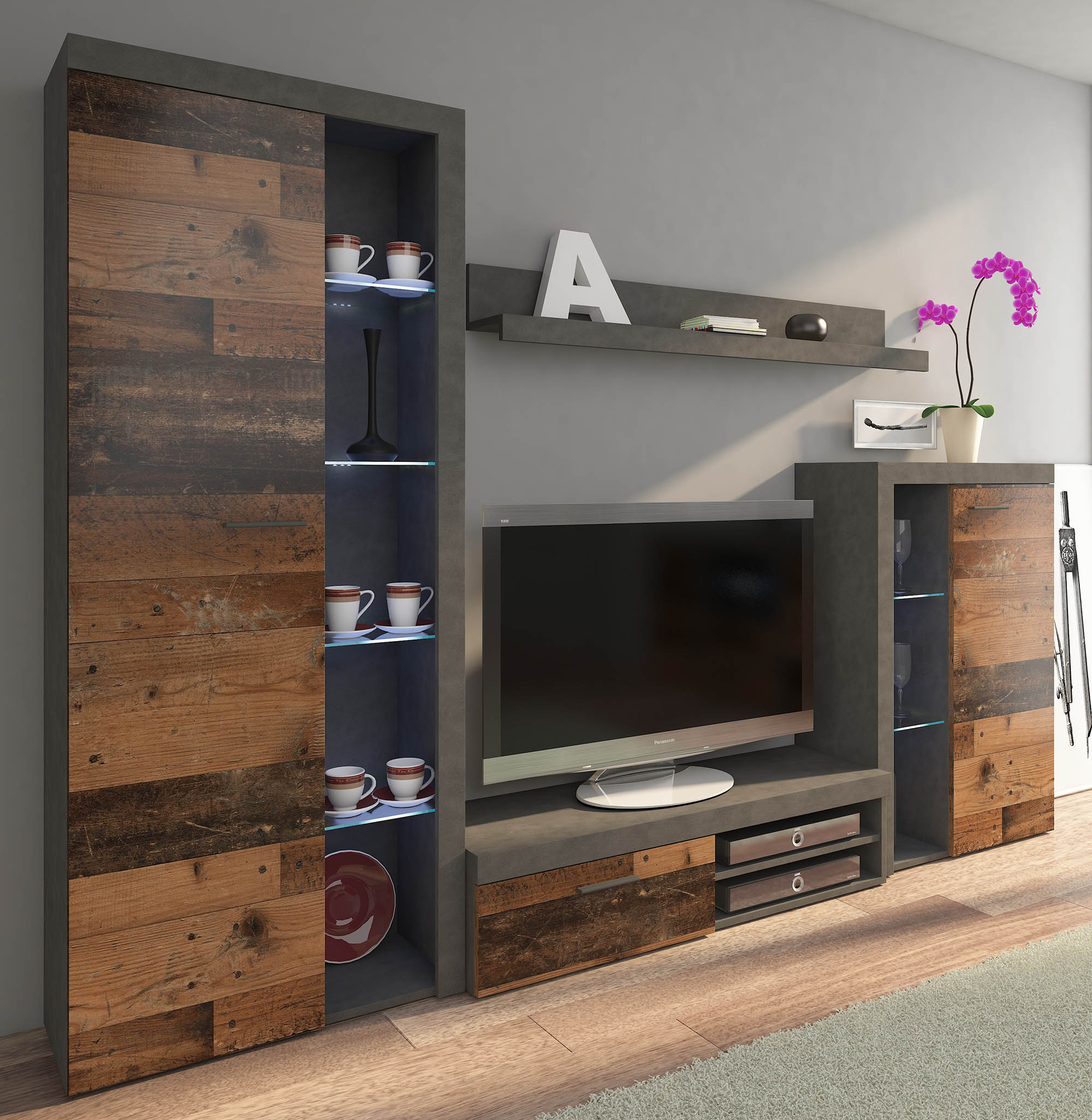 Meblościanka Rumba OLDMAT01 Old Style/Matera + LED
