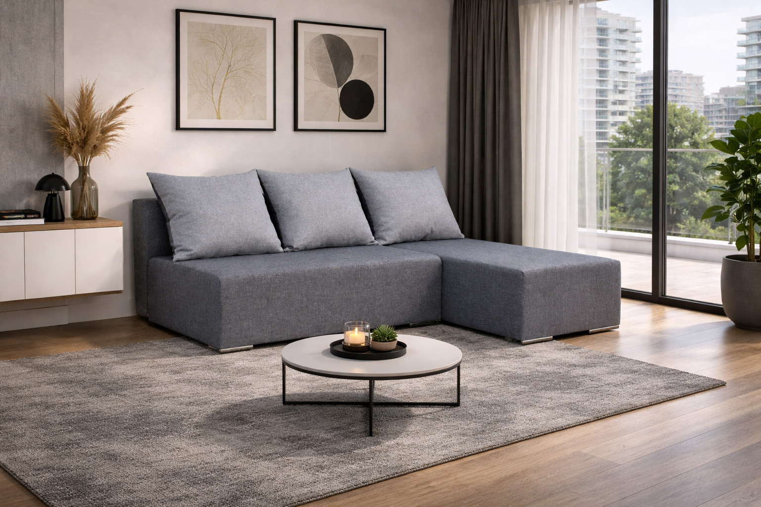 Nowoczesny narożnik w minimalistycznym wydaniu. Docenią go szczególnie osoby dla których każdy m2 pomieszczenia jest ważny. Idealny dla mniejszych mieszkań lub pokoju dziecka. Dzięki możliwości rozłożenia, pozwala na stworzenie dużego łóżka. Wbudowany pojemnik na pościel zadba o porządek w Twoim domu