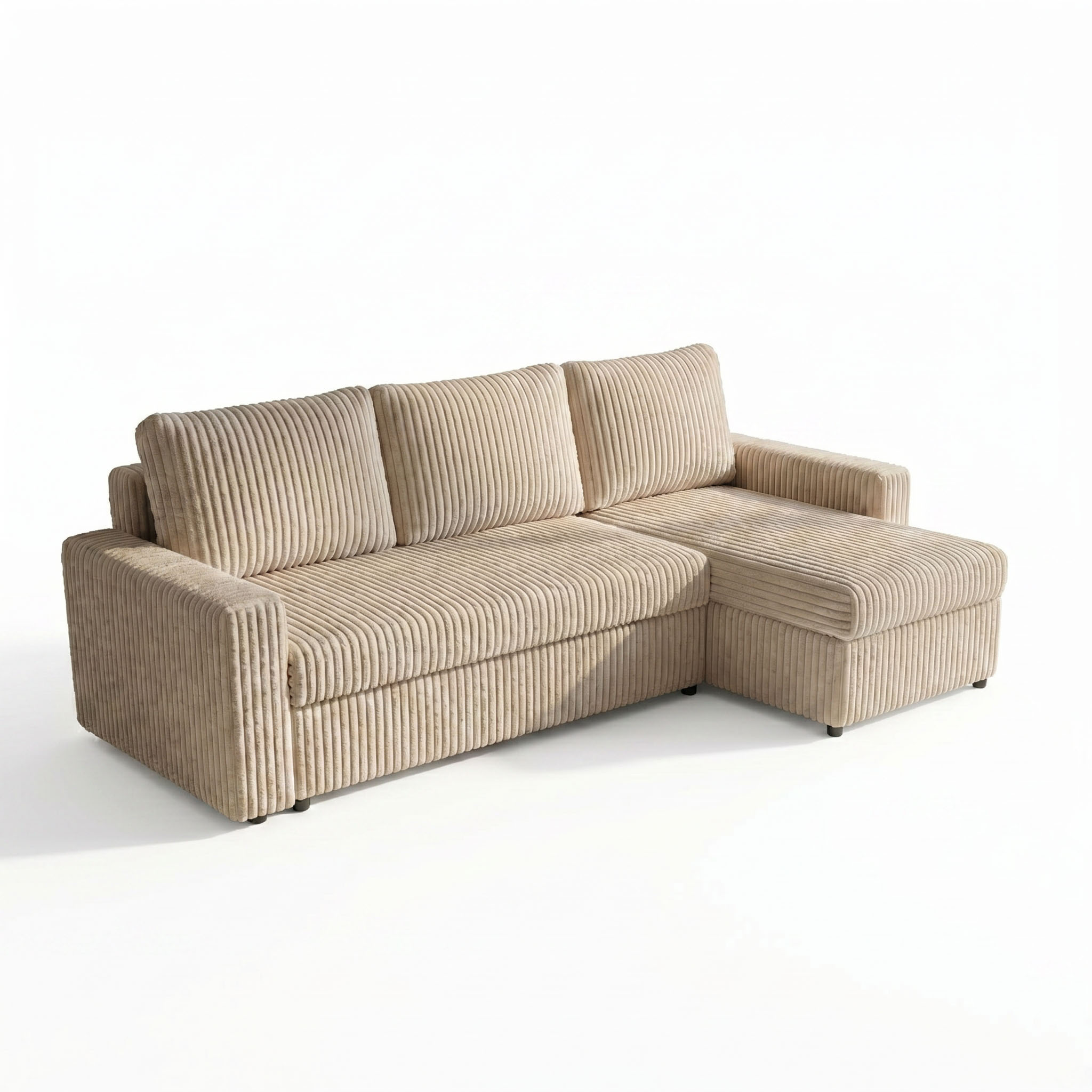 Narożnik rozkładany sofa funkcja spania NIRVANA PLUS sztruks gruby beżowy