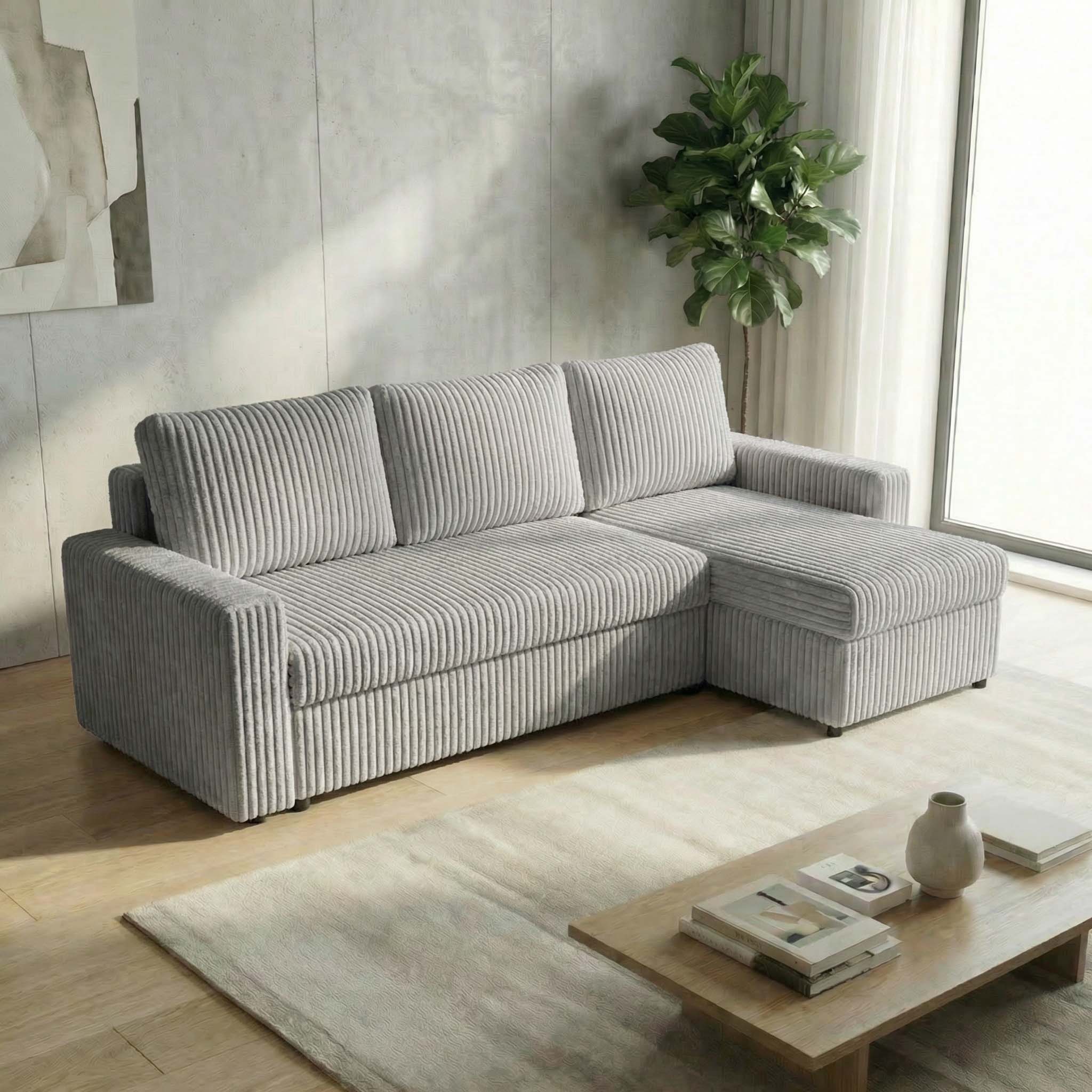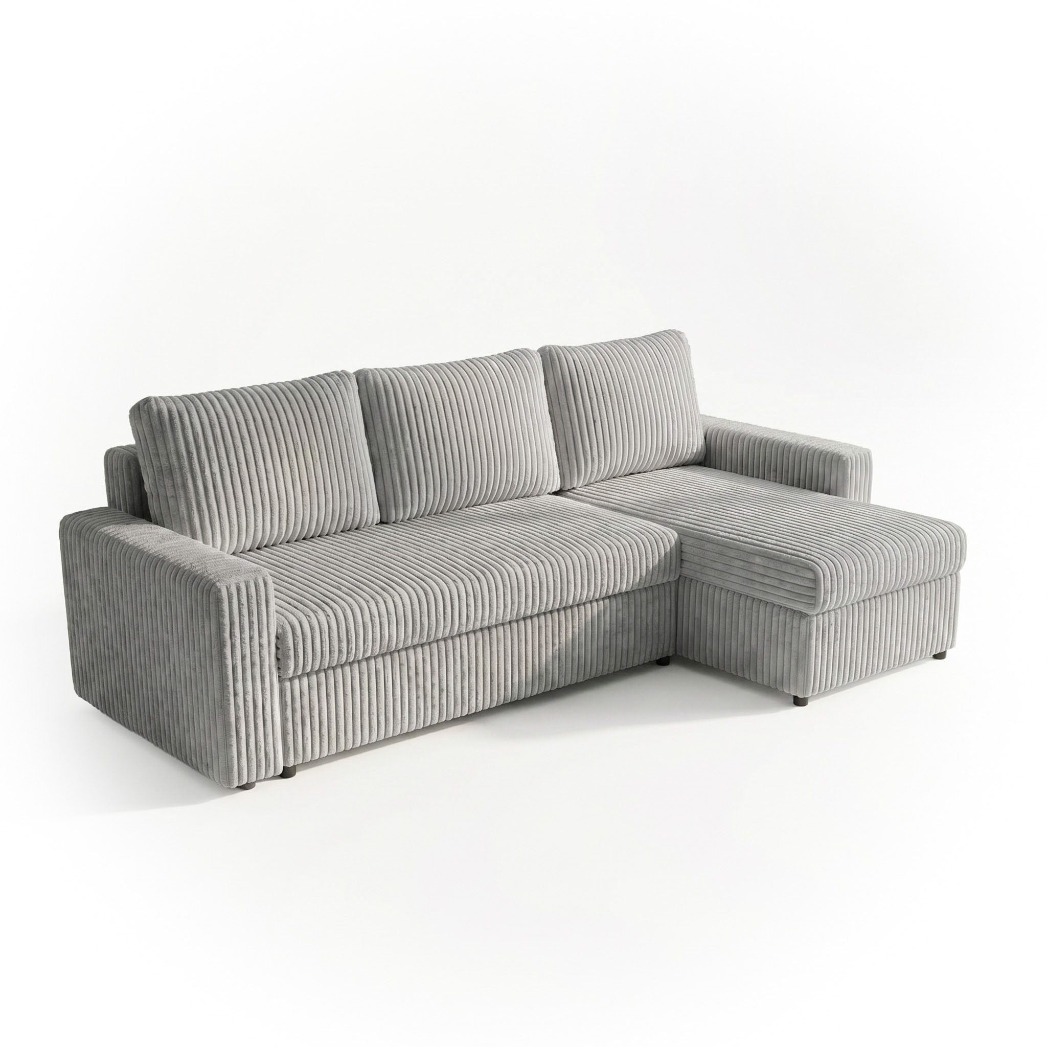 Narożnik rozkładany sofa funkcja spania NIRVANA PLUS sztruks gruby szary
