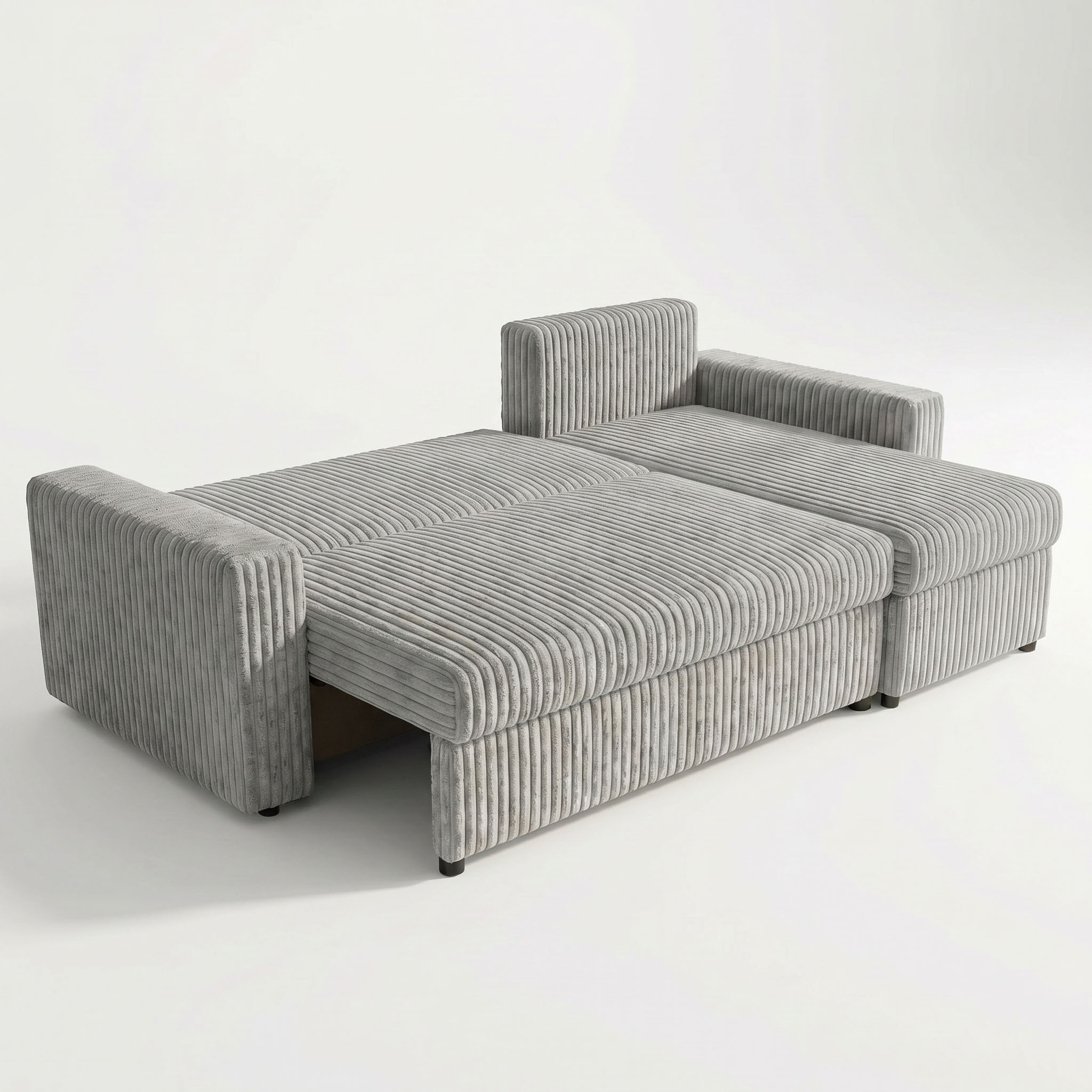 - ✅ Gruba tkanina sztruksowa – mięsista, miękka i przyjemna w dotyku struktura z wyraźnym prążkowaniem oraz wysoką gramaturą, która nadaje narożnikowi solidny i przytulny wygląd.