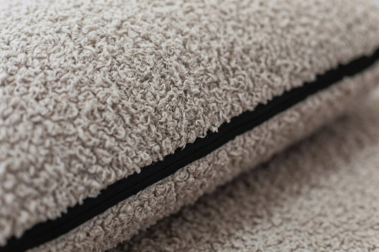 - ✅ Tkanina boucle (baranek) – miękka, puszysta i przyjemna w dotyku struktura o modnym, przytulnym wyglądzie; trwała i łatwa w codziennym użytkowaniu