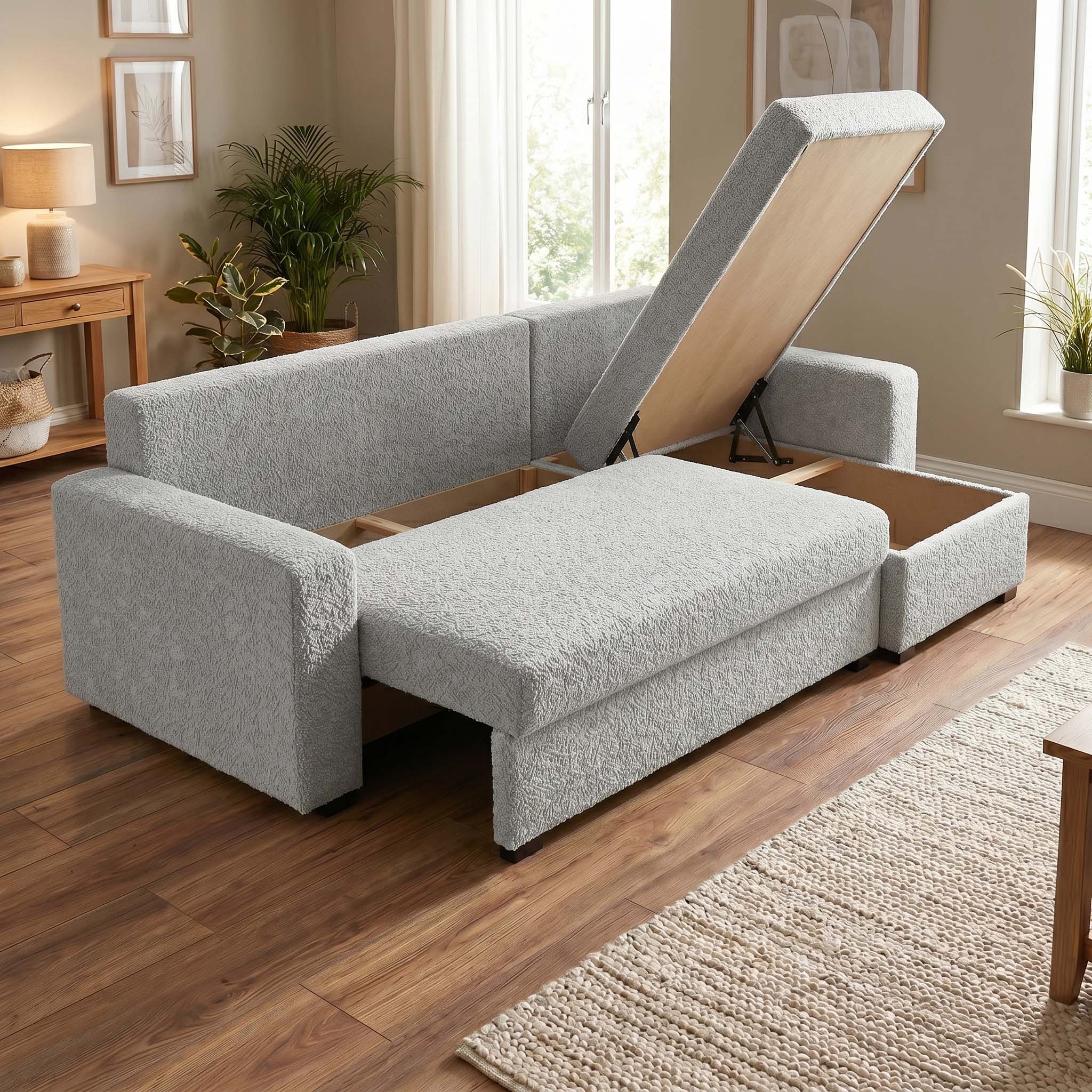 - ✅ Funkcja spania, dzięki której narożnik zmienisz w pełnowymiarowe, dwuosobowe łóżko w zaledwie kilka chwil