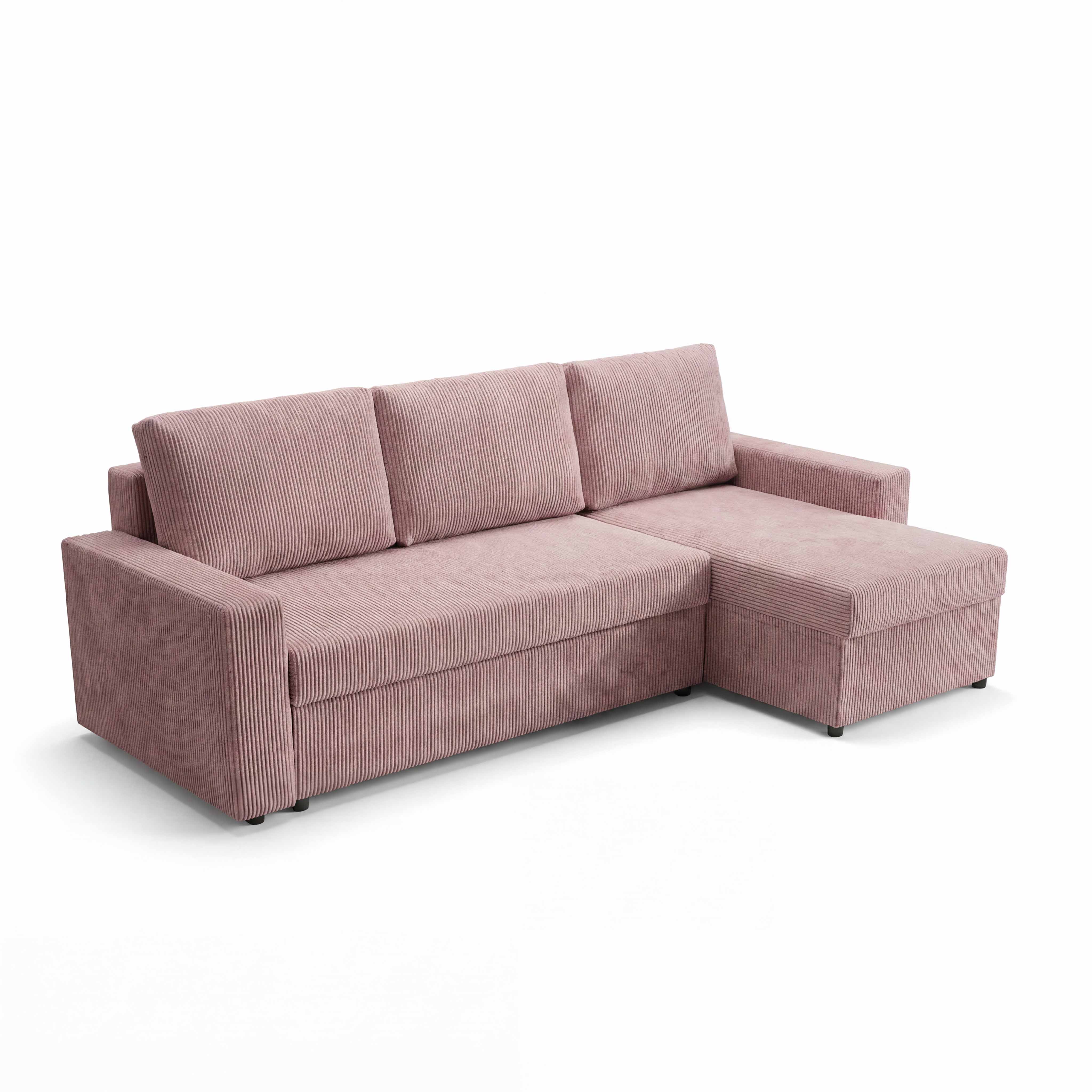 Narożnik z funkcją spania do salonu NIRVANA PLUS sztruks różowy