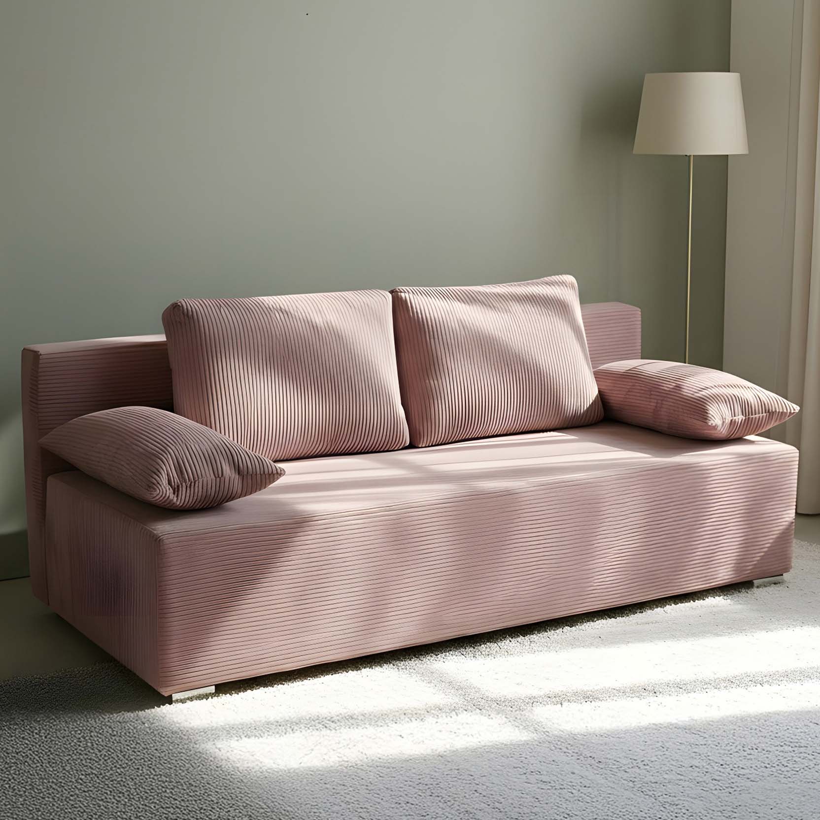 Kanapa rozkładana Lunera Prima 2 sztruks różowy
