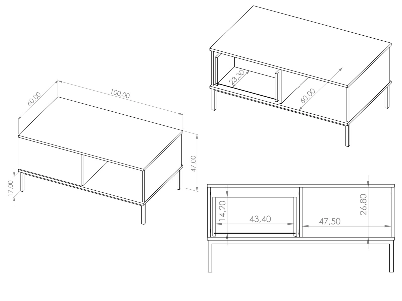 Stolik kawowy Querty - Wymiary/Specyfikacja: