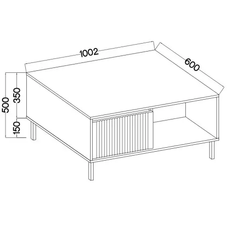 Stolik opiera się na stabilnych, metalowych nogach w czarnym kolorze, które dodają mu lekkości i nowoczesnego charakteru. Wysuwana szuflada osadzona jest na prowadnicach kulkowych, co zapewnia wygodne i ciche użytkowanie. To stylowy, funkcjonalny mebel, który świetnie odnajdzie się w roli centralnego punktu codziennego wypoczynku.