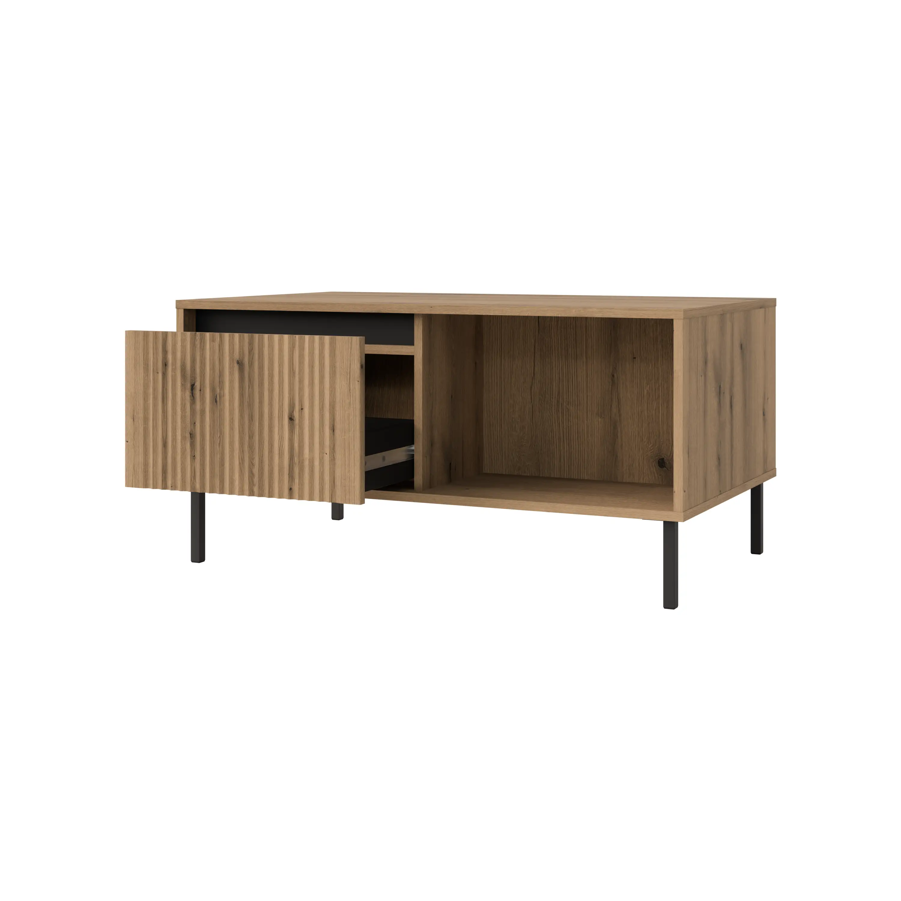 Stolik kawowy z ryflowanym frontem Yukashi – styl i wygoda w salonie