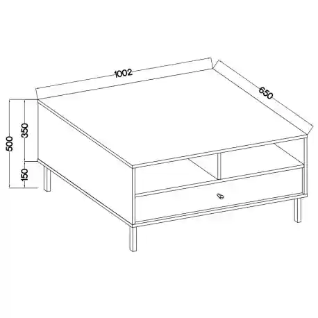 Stolik kawowy, który łączy w sobie funkcjonalność i estetykę, pozwalając na uporządkowanie przestrzeni wokół sofy czy fotela. Dzięki pojemnej szufladzie i otwartym półkom, możesz łatwo przechować piloty, gazety czy drobne akcesoria, a jego elegancki design zyska uznanie w każdym nowoczesnym wnętrzu.