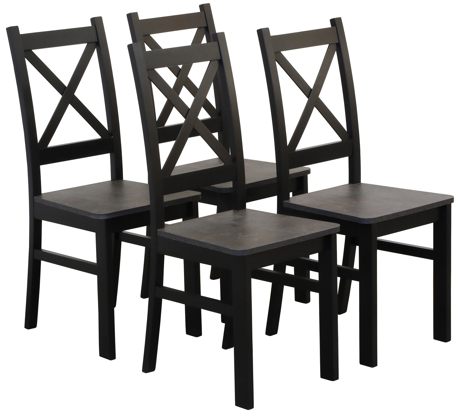 Zestaw 4x Krzesło krzyżak drewniane do jadalni Czarny/Beton - wymiary/specyfikacja