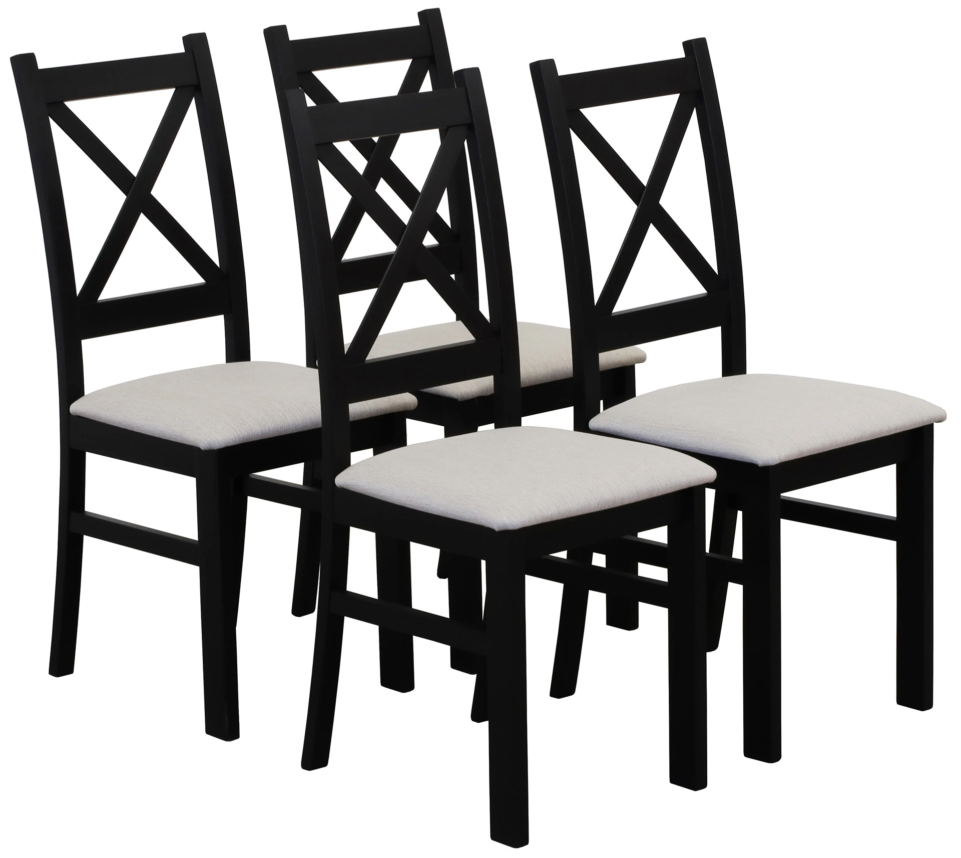 Zestaw 4x Krzesło krzyżak tapicerowane do jadalni Czarny/Beż - wymiary/specyfikacja