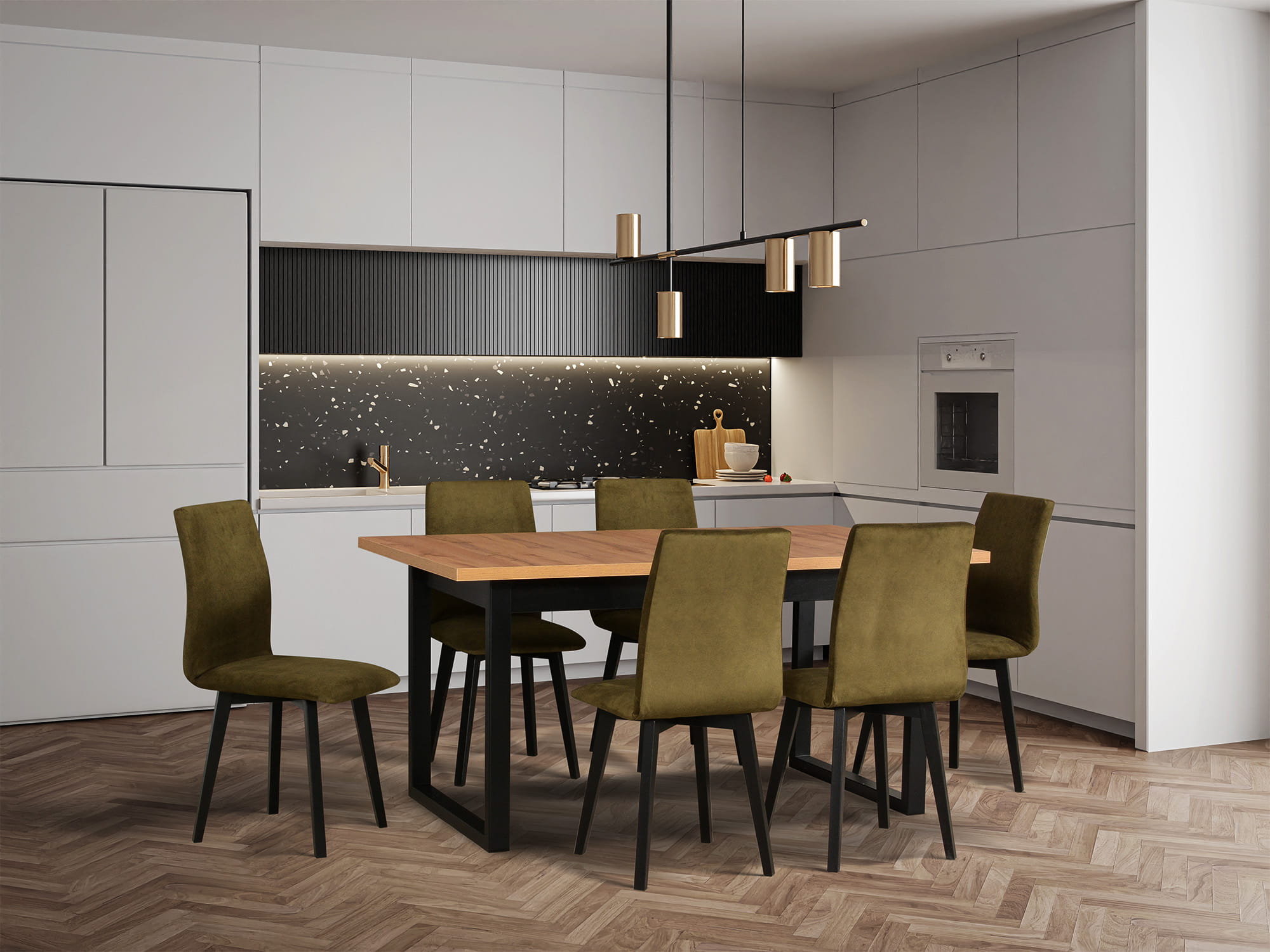 Stół 140/180x80 z 6 krzesłami L007 Czarny/Dąb Grandson