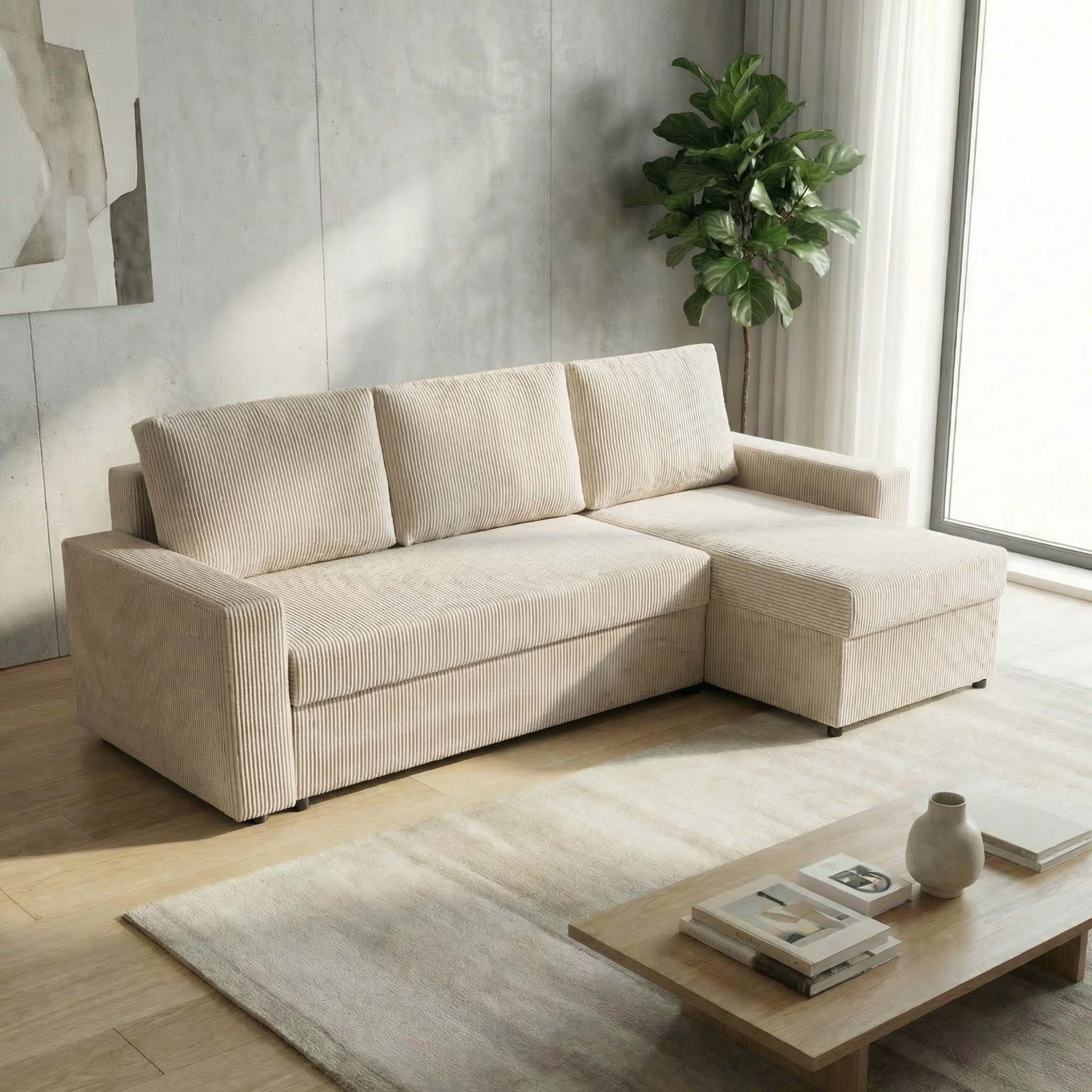 Narożnik do salonu rozkładany sofa funkcja spania NIRVANA sztruks kremowy