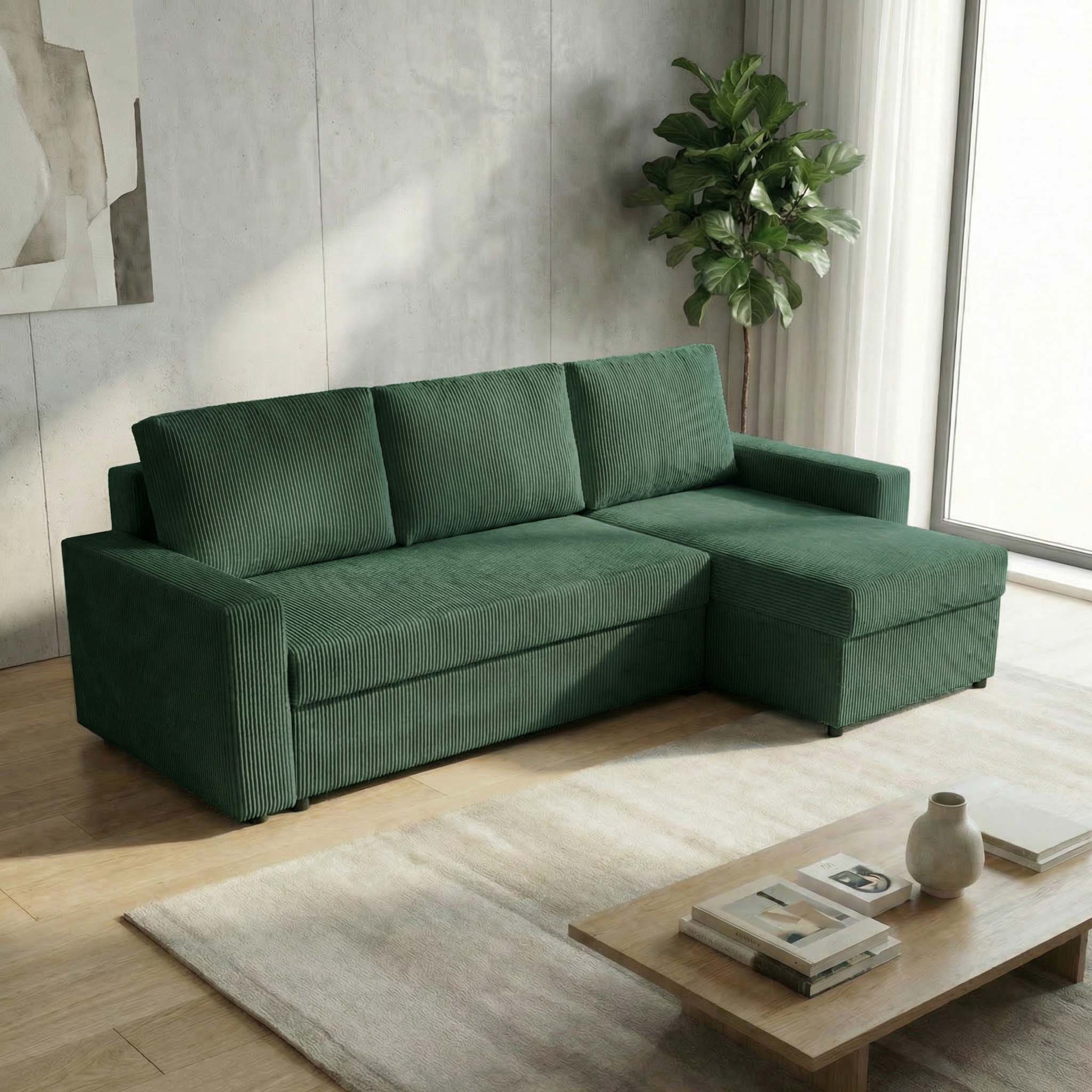 Narożnik do salonu rozkładany sofa funkcja spania NIRVANA sztruks zielony