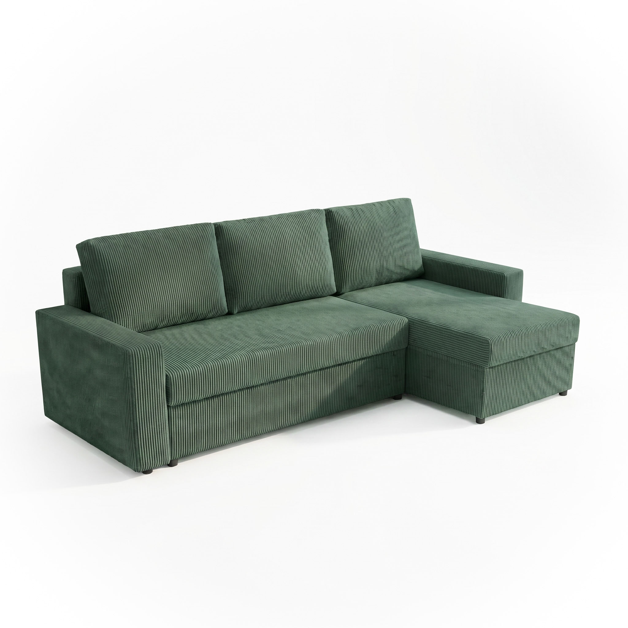 Nowoczesny Narożnik z funkcją spania do salonu NIRVANA sztruks zielony