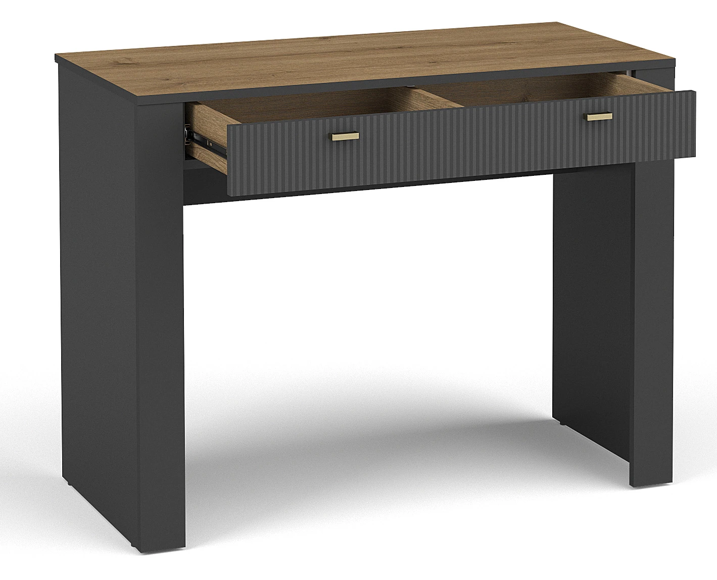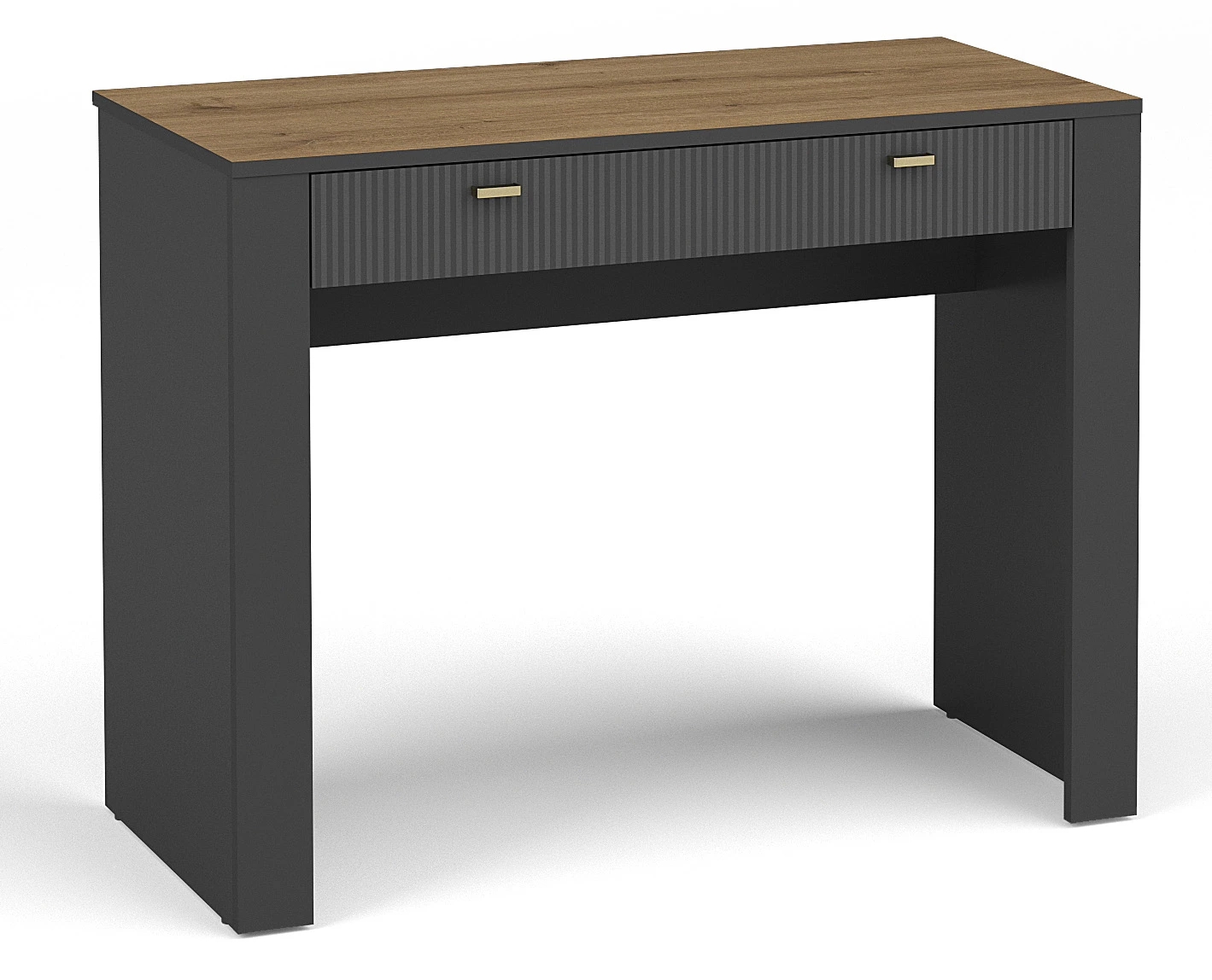 Wyjątkowa toaletka do garderoby Mossa MO10 to niezbędny element każdej nowoczesnej sypialni. Jej minimalistyczny design w połączeniu z funkcjonalnością sprawią, że dbanie o porządek stanie się prawdziwą przyjemnością. Zaprojektowana z myślą o praktycznym wykorzystaniu przestrzeni, posiada szufladę oraz półkę, zapewniając miejsce na kosmetyki, biżuterię czy akcesoria. Klasyczne połączenie czarnego z dębem whisky nadaje meblowi elegancji, a matowe wykończenie dodaje mu nowoczesnego charakteru. Odkryj teraz funkcjonalność i piękno w jednym!